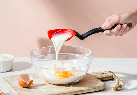 Supoon has a reputation for leaving nothing behind. Its flat silicone scraping tip and flexible squeegee sides scrape out every last piece of food from your pan or bowl.